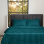 Luxury Teal Striped Satin Bedsheet Set – Hotel Collection