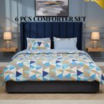 JHome 6-Piece Geometric Comforter Set – Modern Blue & Beige Collection